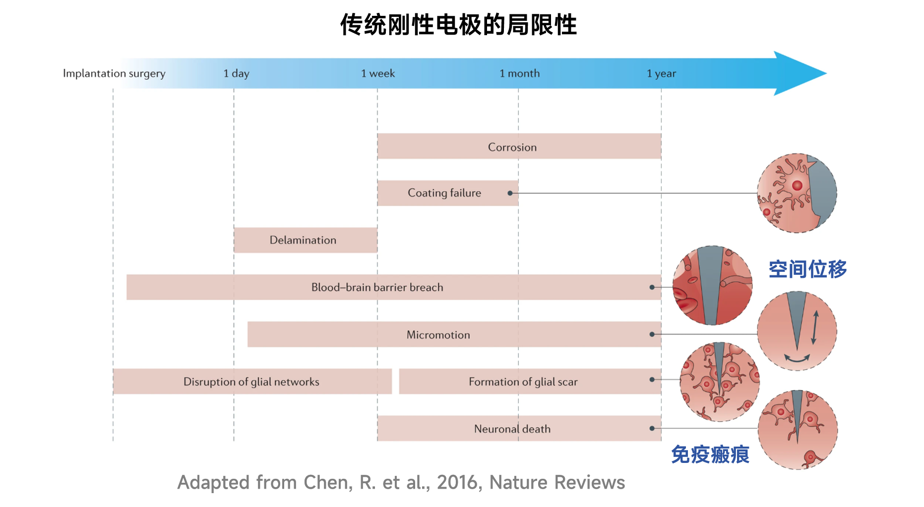 传统电极植入后,可能会引起空间位移和免疫瘢痕