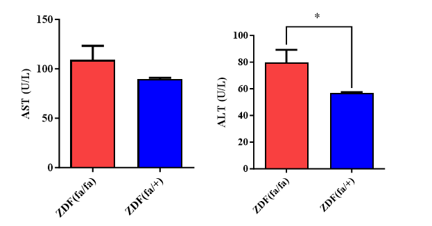 16w时(N=10),其中ALT模型组与对照组相比,差异显著(p<0.05);AST无显著性差异(p>0.05)。血脂(TC、TG)水平,模型组与对照组相比差异显著(p<0.001)。